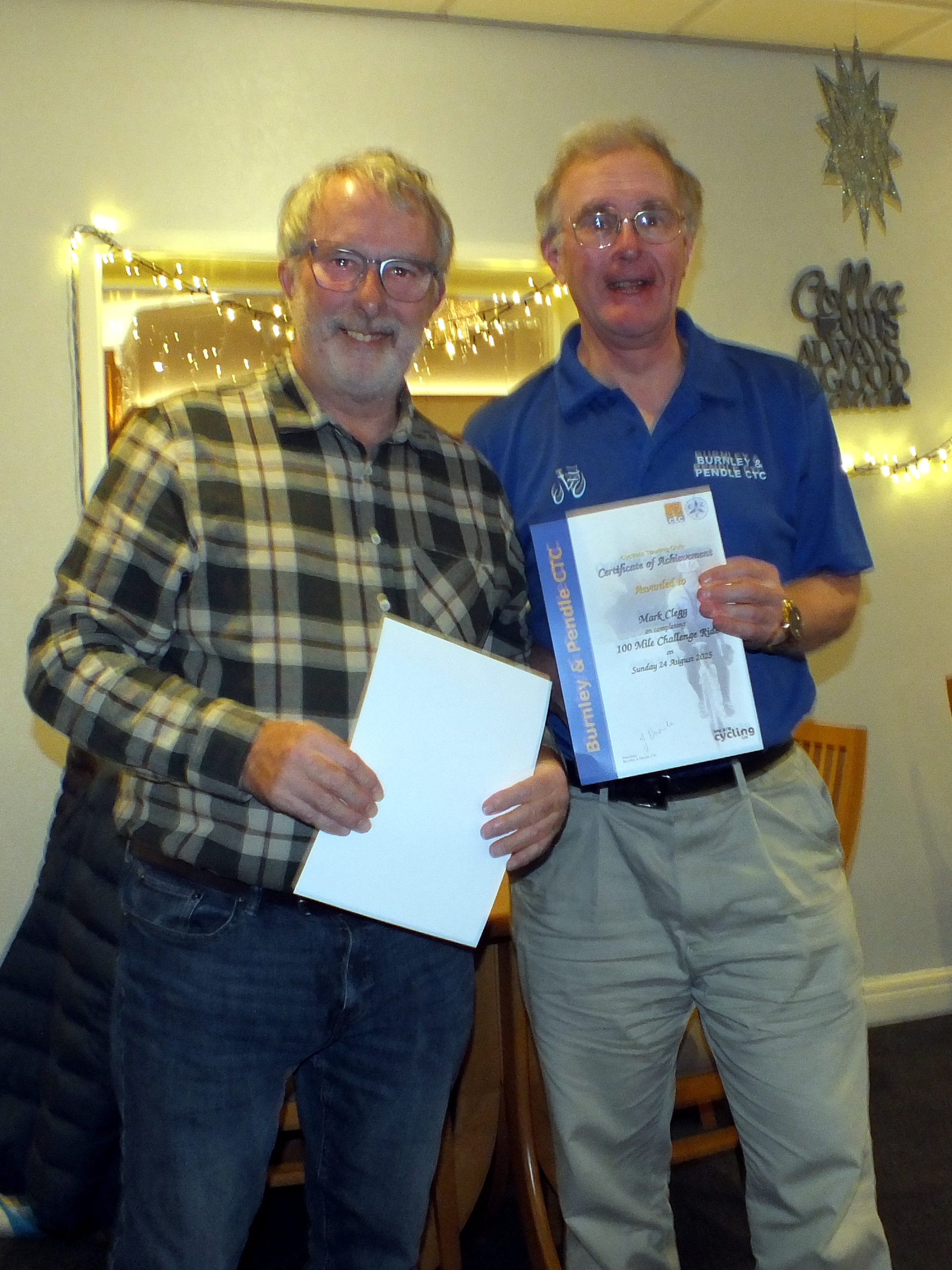 Additionally, certificates were awarded to those who completed our 100 mile challenge ride in August: David Tinker, Mark Clegg, and Roger Taylor.