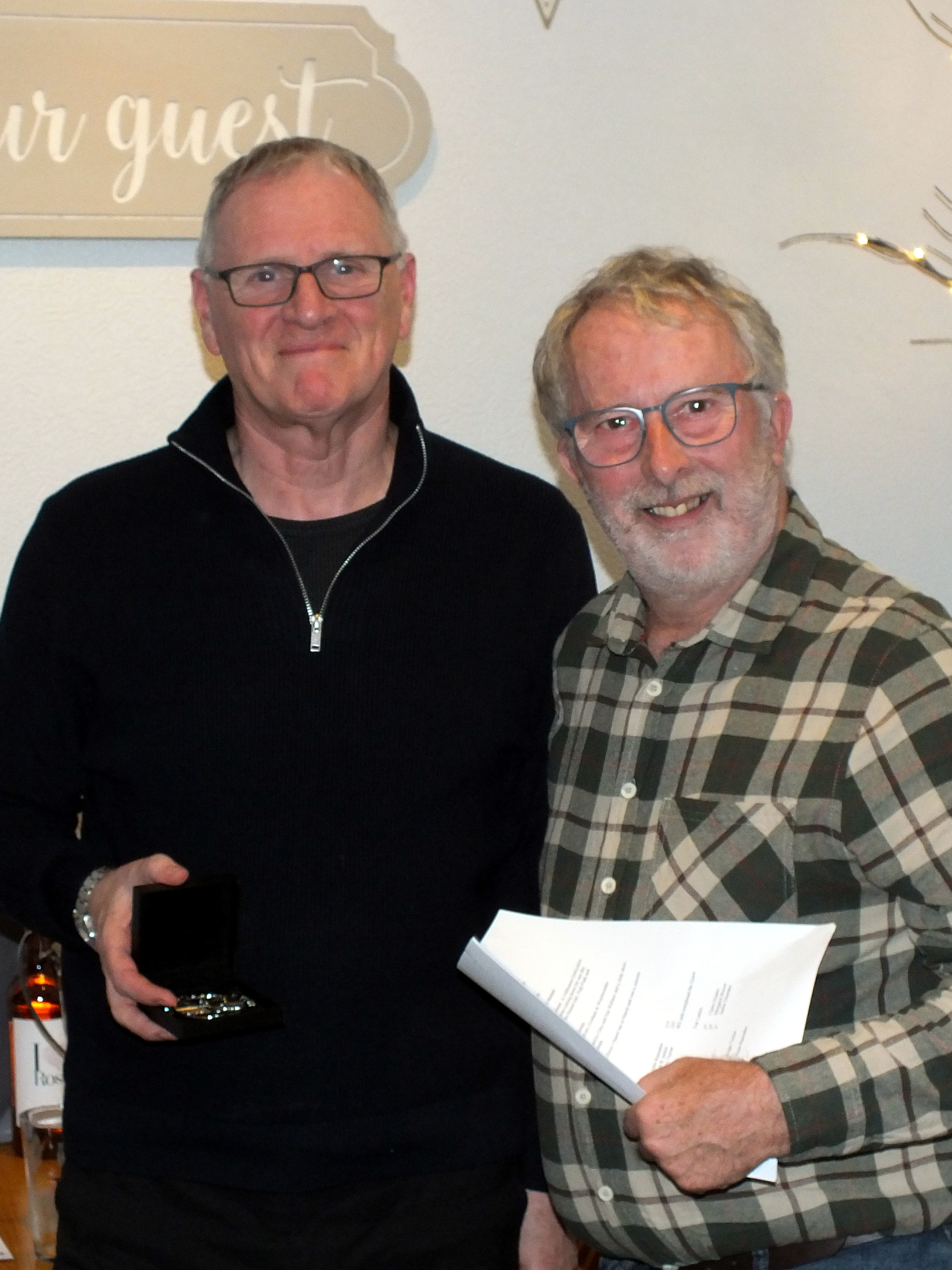 The club Christmas Dinner is our traditional time to present any club awards for the last 12 months, these being the winners of the Jack Harrison Trophy: Roger Taylor, and the Bill Heywood Trophy: Peter Ramsden. Congratulations to both.